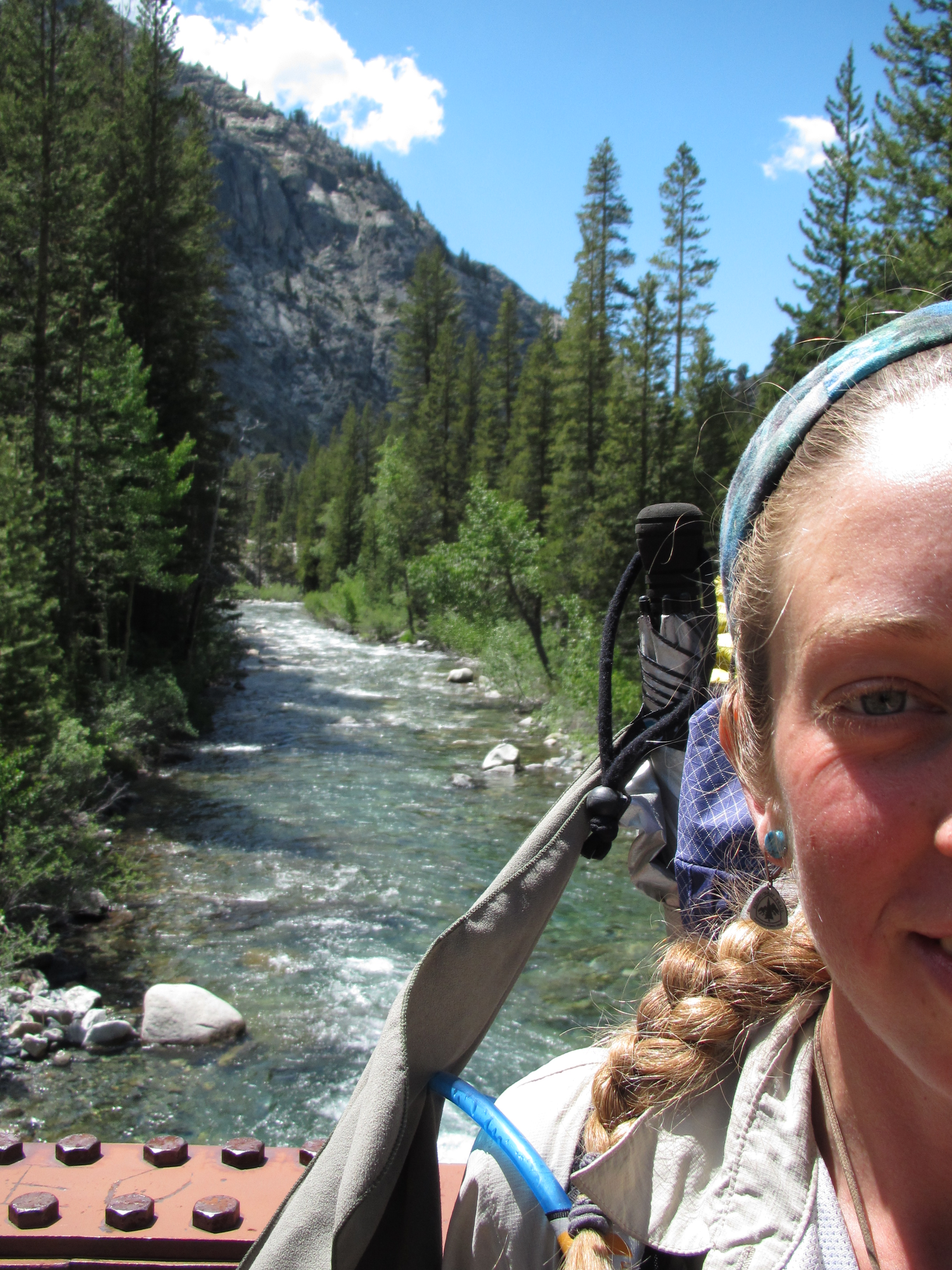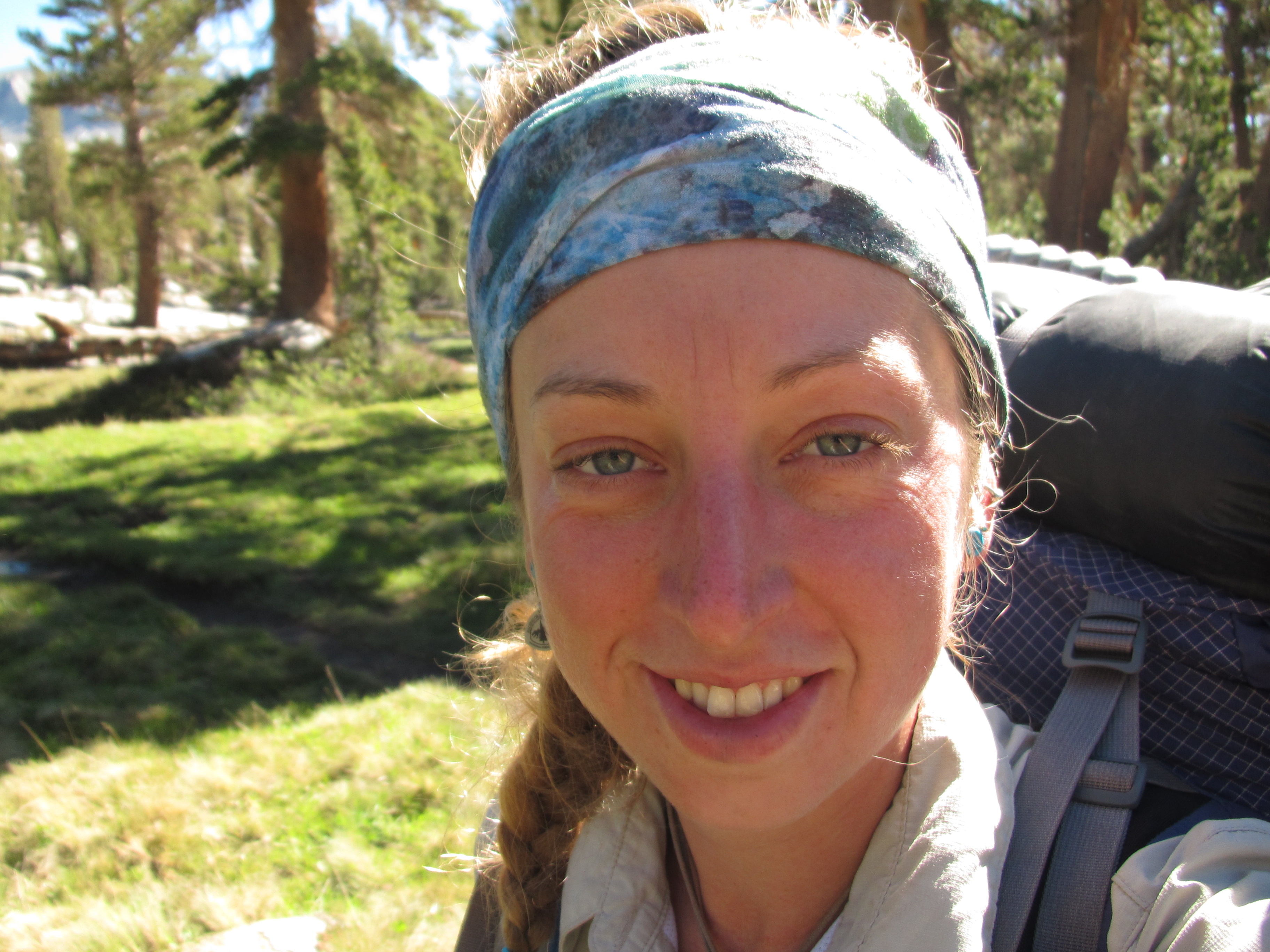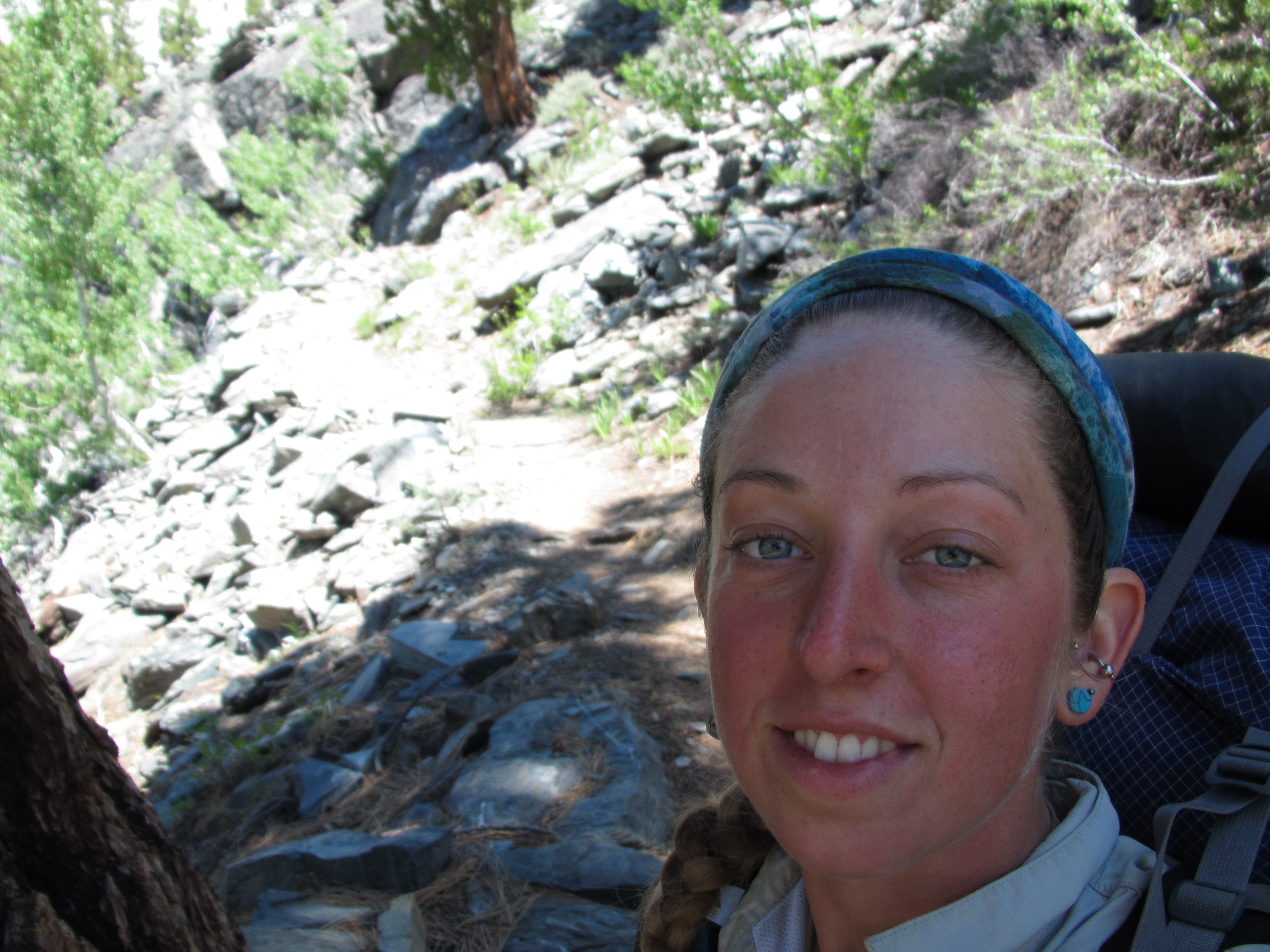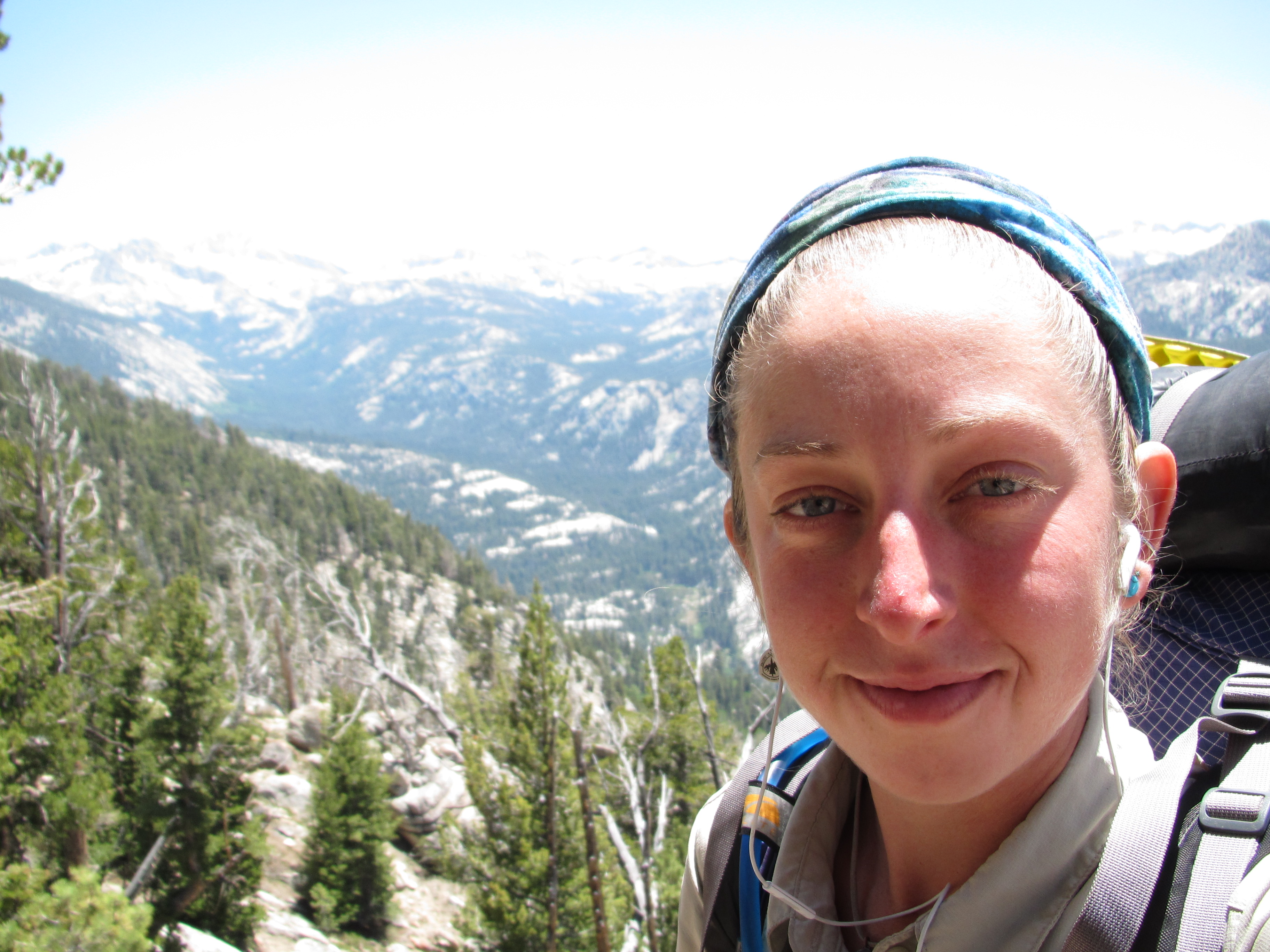 Along my trek the following day I was lost in my earbuds – music makes my thoughts richer because I’ve thought about just about everything I can think of and I get bored thinking about the same things all the time, so music helps keep things interesting. I saw a group of people alongside the trail who called me over. They were past PCT thru hikers who backpacked in for some on-trail trail magic. They offered coffee, cookies, and good company. The same day, a few hours later, I saw a woman sitting by the creek in the distance and as I approached she placed herself beside the trail to greet me. Her trail name was Sleuth and she was happy to see a young woman on the trail. So of course I sat and talked with her for a long time. She also had a sweet german shepard doggy who made me smile. She gave me peanut butter granola bars and two packets of mango and guava Tang! She said you can only buy them in Mexico. They were delicious…. And that SAME DAY as the evening approached and I was looking for a place to sleep, I was greeted by a family near Ebbett’s pass who made me a garden burger for dinner as well as a huge plate of watermelon, cantelope, and grapes. It was the most gourmet trail magic yet!