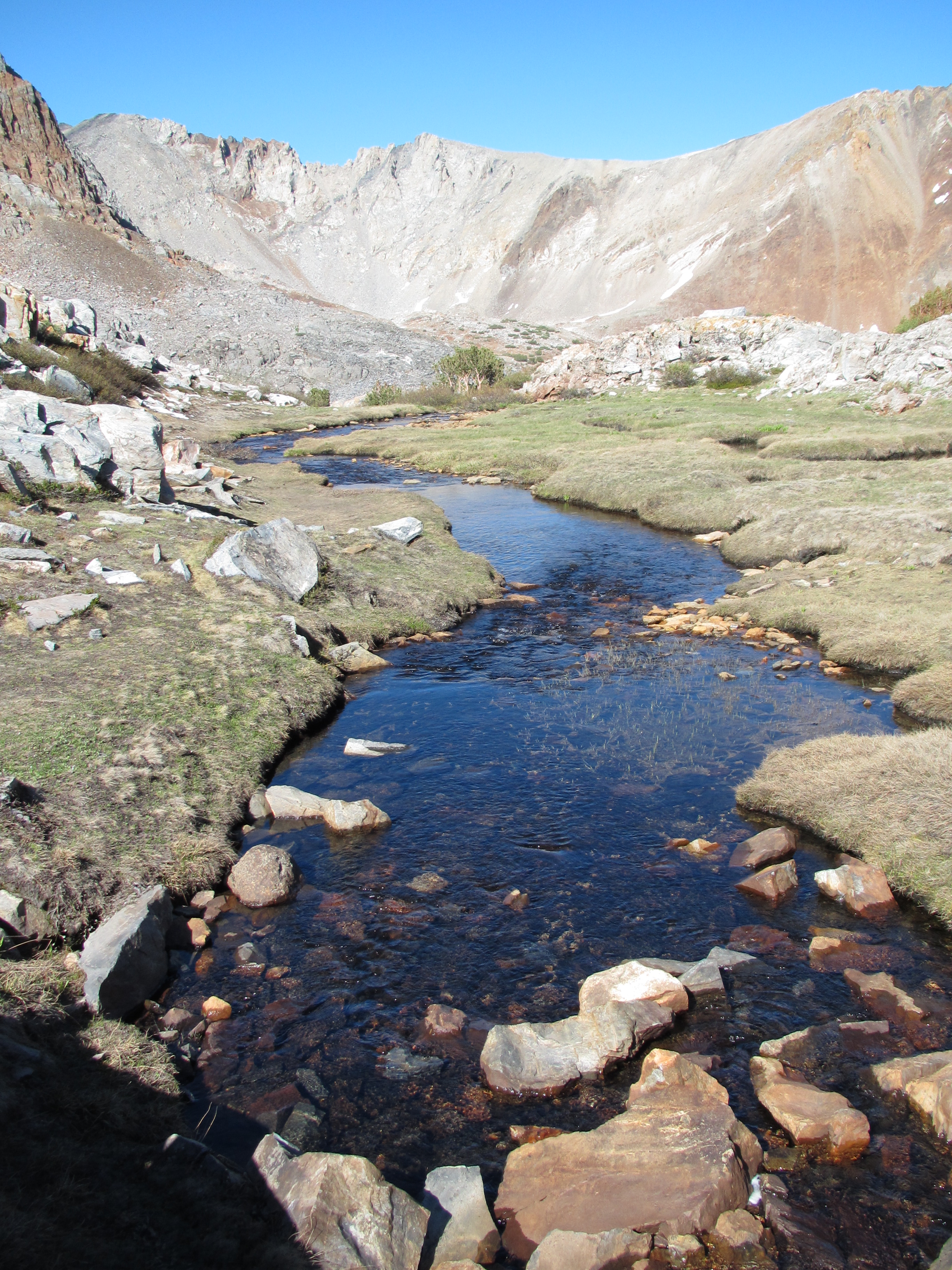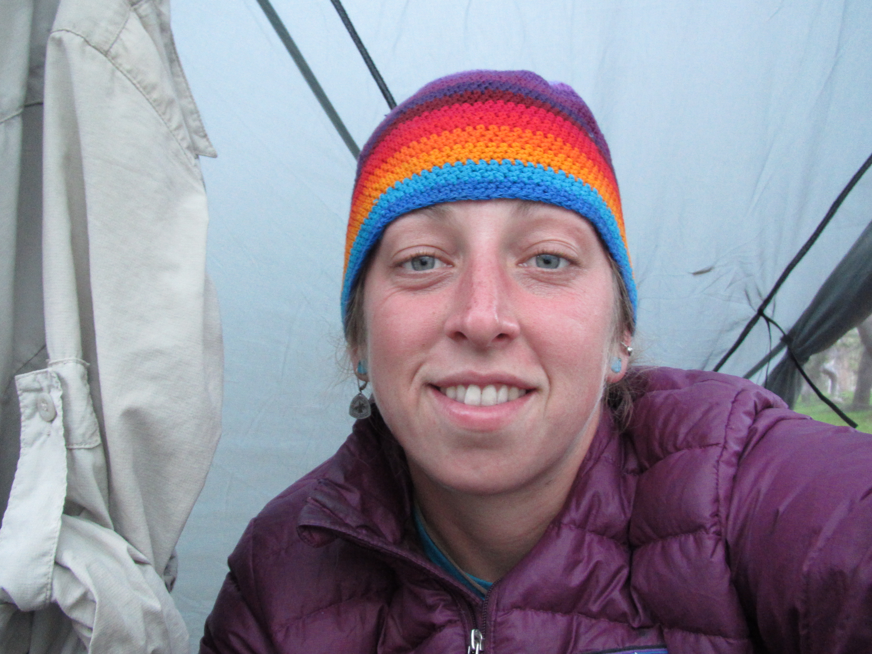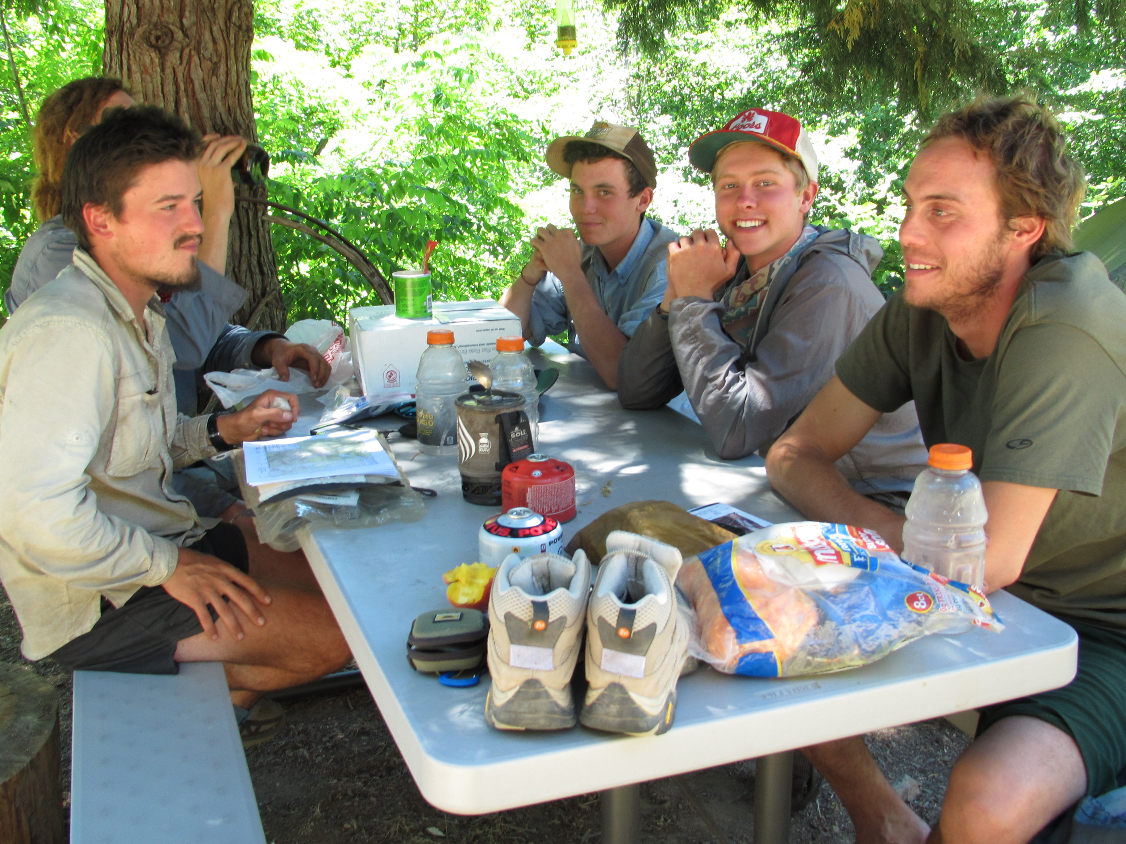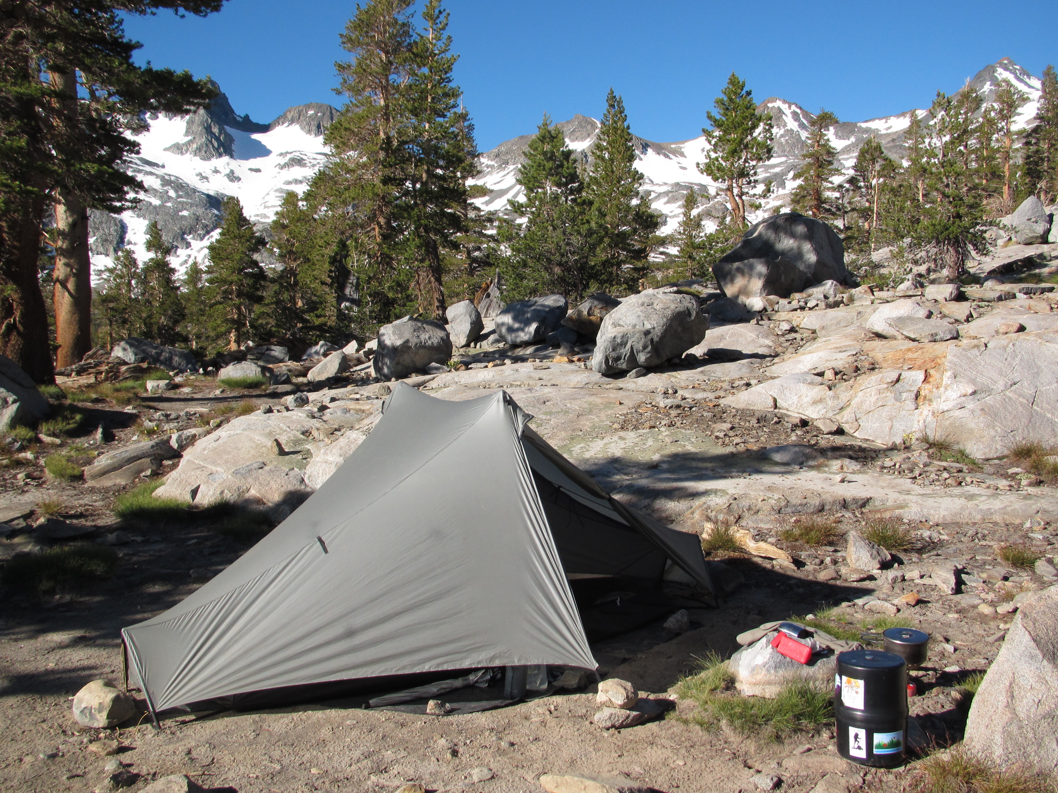 Along my trek the following day I was lost in my earbuds – music makes my thoughts richer because I’ve thought about just about everything I can think of and I get bored thinking about the same things all the time, so music helps keep things interesting. I saw a group of people alongside the trail who called me over. They were past PCT thru hikers who backpacked in for some on-trail trail magic. They offered coffee, cookies, and good company. The same day, a few hours later, I saw a woman sitting by the creek in the distance and as I approached she placed herself beside the trail to greet me. Her trail name was Sleuth and she was happy to see a young woman on the trail. So of course I sat and talked with her for a long time. She also had a sweet german shepard doggy who made me smile. She gave me peanut butter granola bars and two packets of mango and guava Tang! She said you can only buy them in Mexico. They were delicious…. And that SAME DAY as the evening approached and I was looking for a place to sleep, I was greeted by a family near Ebbett’s pass who made me a garden burger for dinner as well as a huge plate of watermelon, cantelope, and grapes. It was the most gourmet trail magic yet!