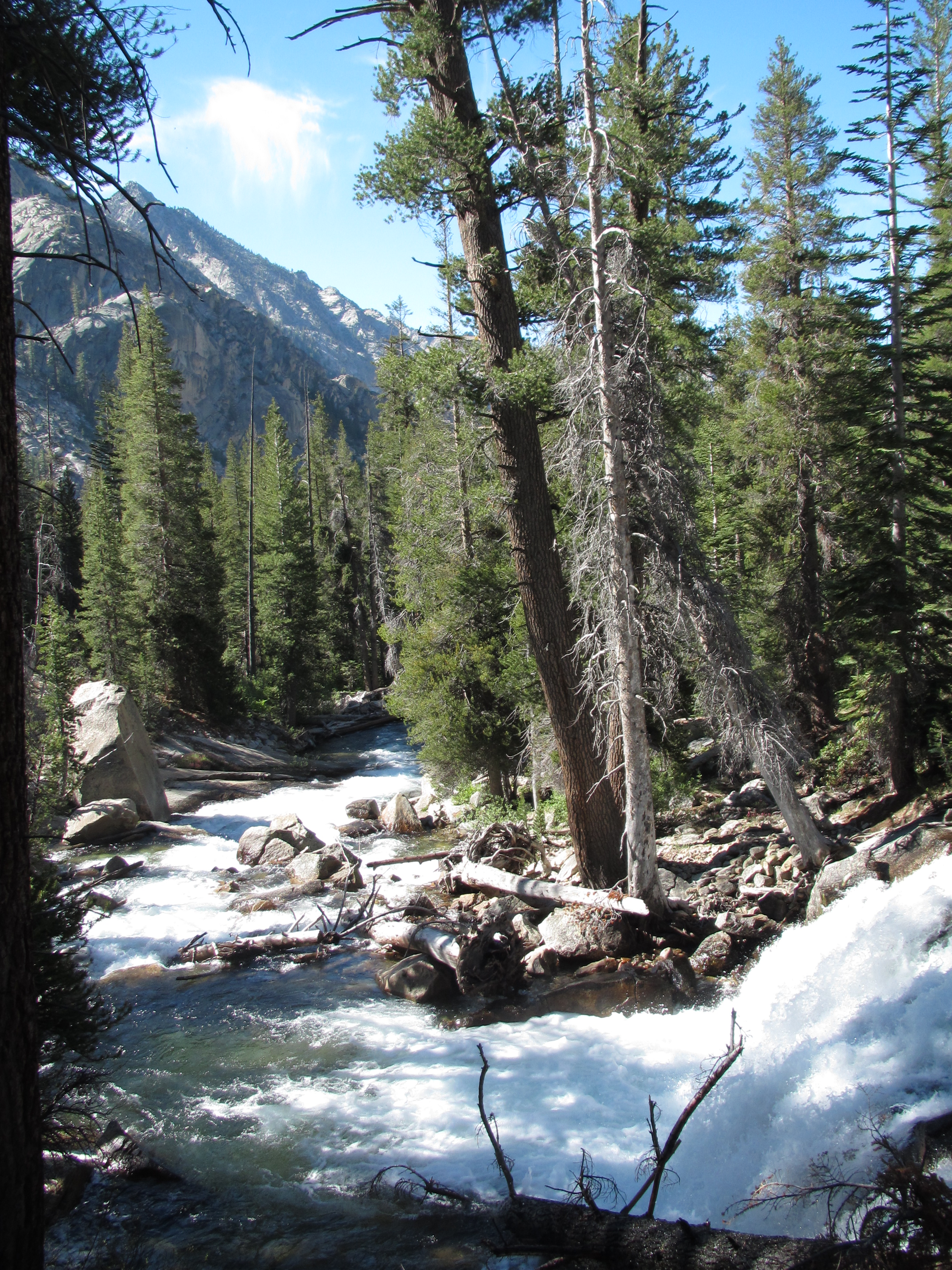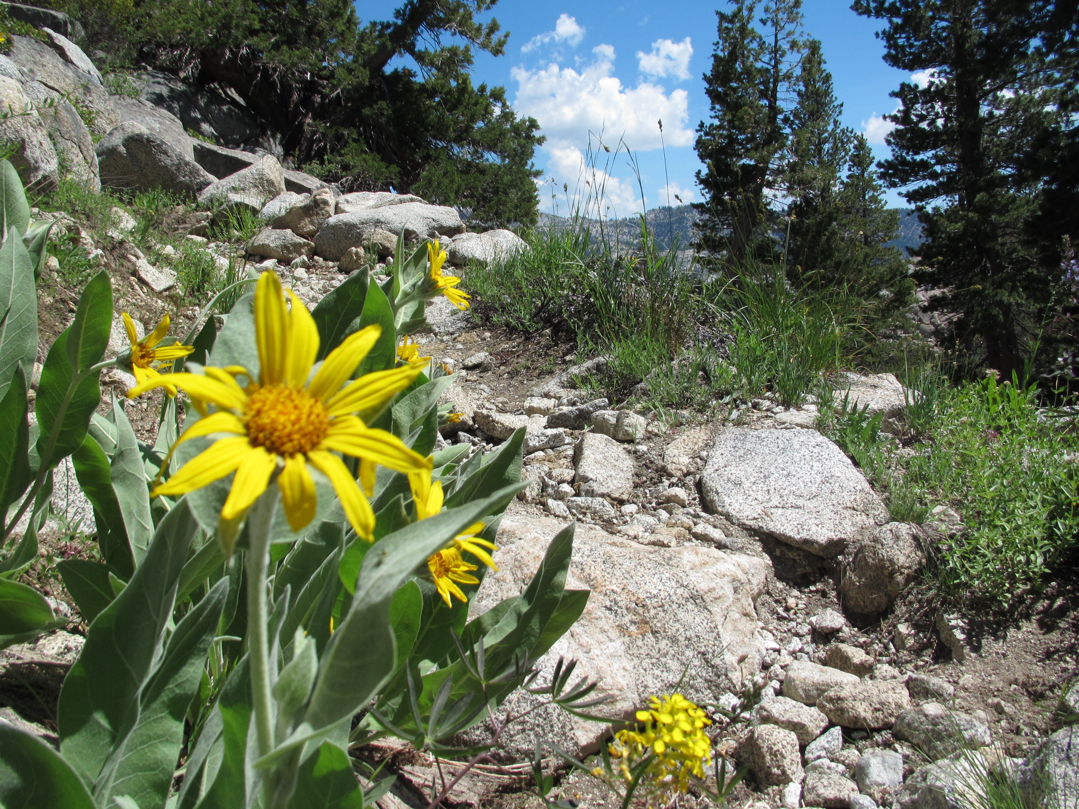 On July 3rd, my friends Eldon, Kathy, and Julie picked me up from Kennedy Meadows and took me to their beautiful cabin where we spent the evening relaxing and fishing at the river nearby. Another storm blew in so we had the awesome experience of cleaning fish under a tin roof with hail and rain coming down, it was so cool! Dinner was amazing and the next day we spent exploring Bridgeport for 4th of July. We watched the parade, looked at art, swam in the lower Twin Lakes, and watched an incredible firework show after dark. It was a great celebration! The next day, Kathy gave me a gift from her garden – delicious dried apricots which sustained me for days after my visit with them. Julie and Eldon hiked out with me on the morning of the 5th and we said goodbye after about 4 miles. I was a little sad for a bit as I hiked away, but that is expected now and I am able to cope much better than before. Julie and her family gave me something to look forward to and what came truly was trail magic!