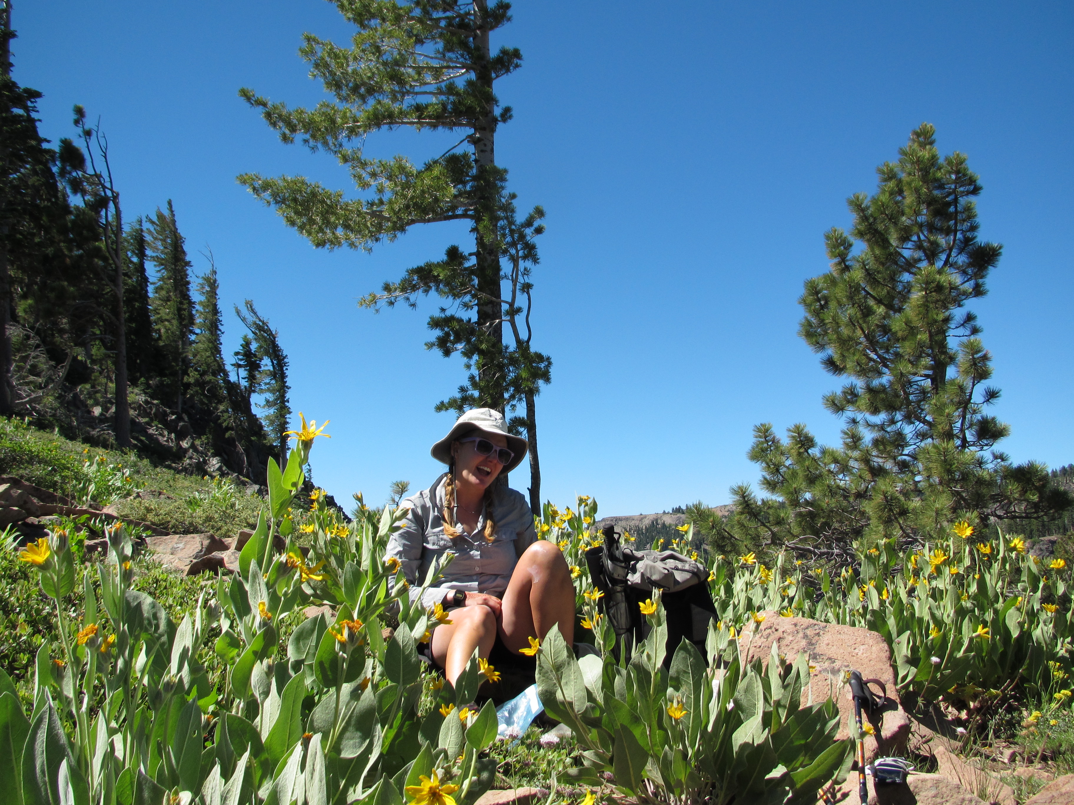 The next day brought with it a whole new landscape of dark volcanic rock formations and beautiful wildflowers. After a long walk I finally made it to South Lake Tahoe where I was reunited with my friend Heather (aka Hot Tub) with whom I began the trail with. It was lovely to see her face after what seems like such a long time! In Tahoe I replaced my backpack and shoes due to my failing pack and the need for ankle support since I repeatedly rolled my ankles.