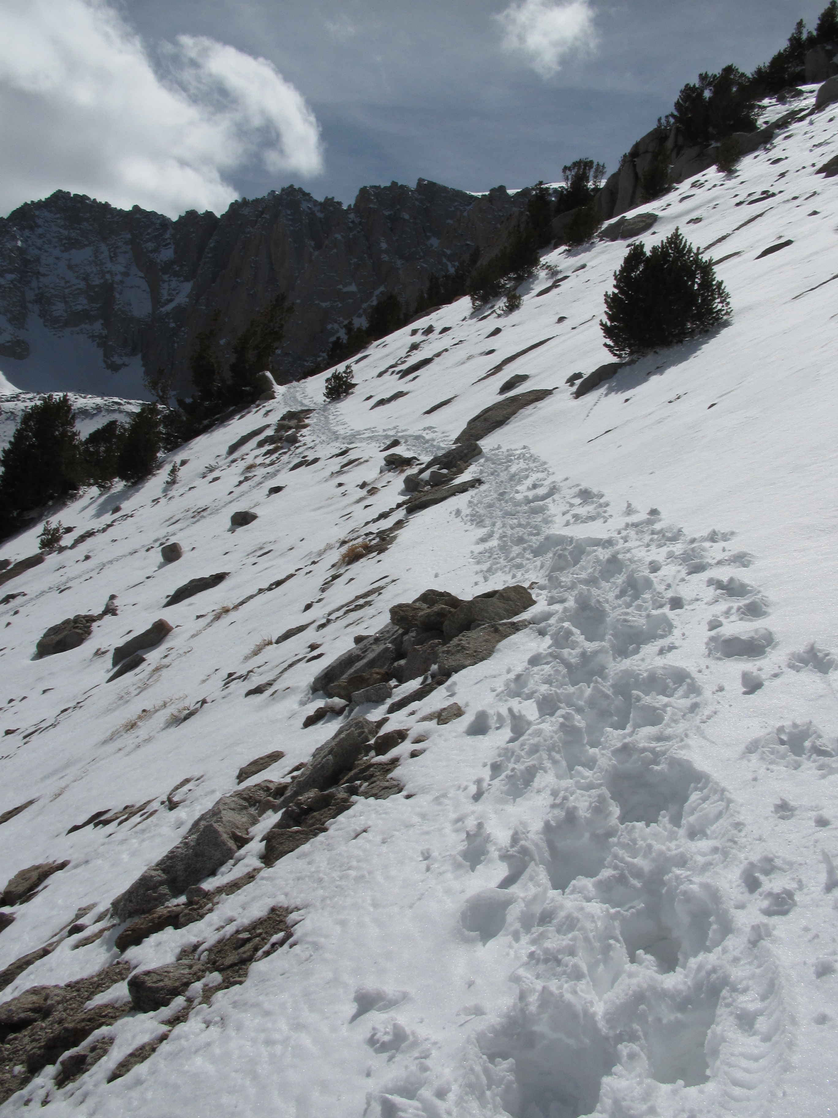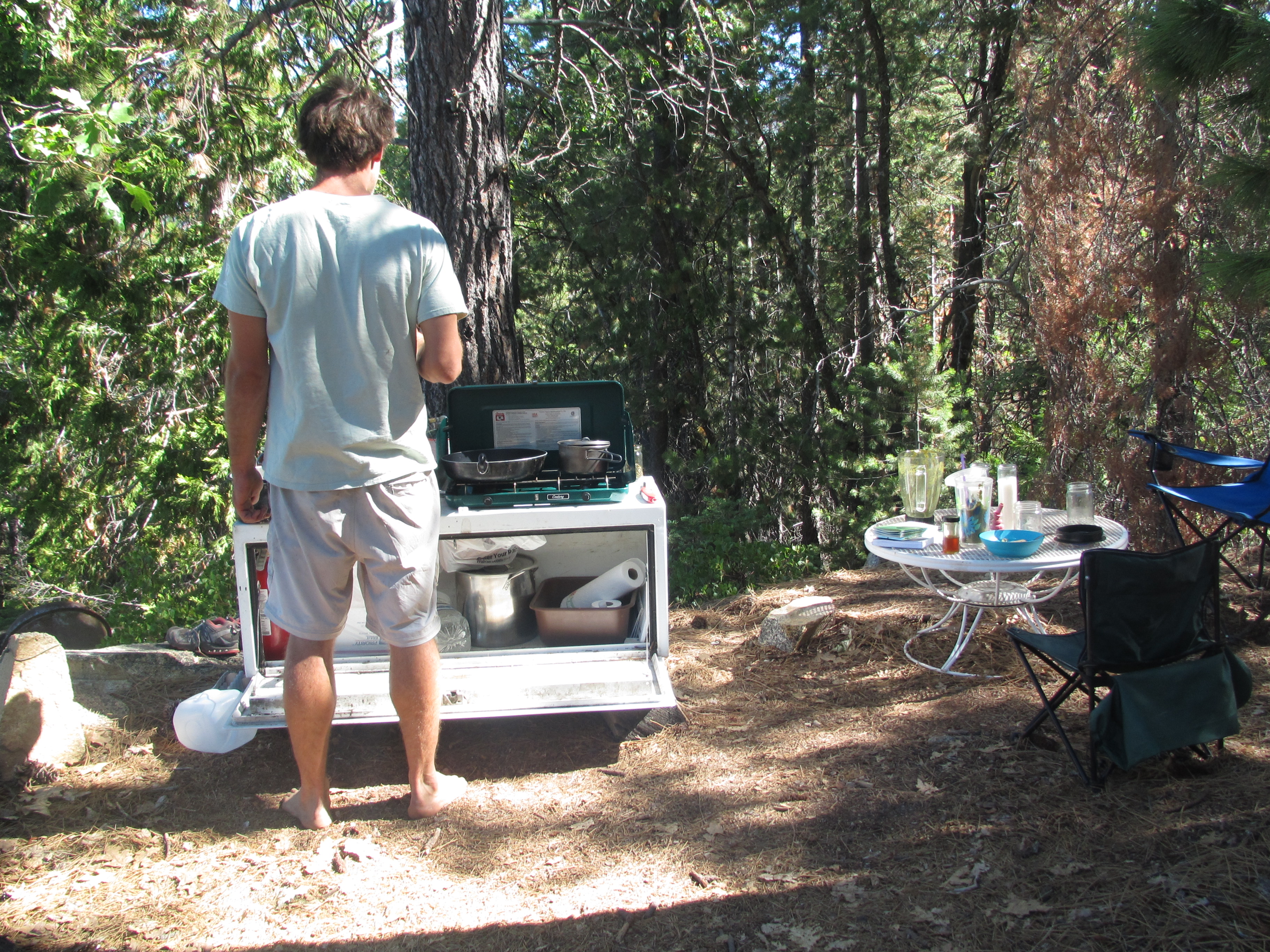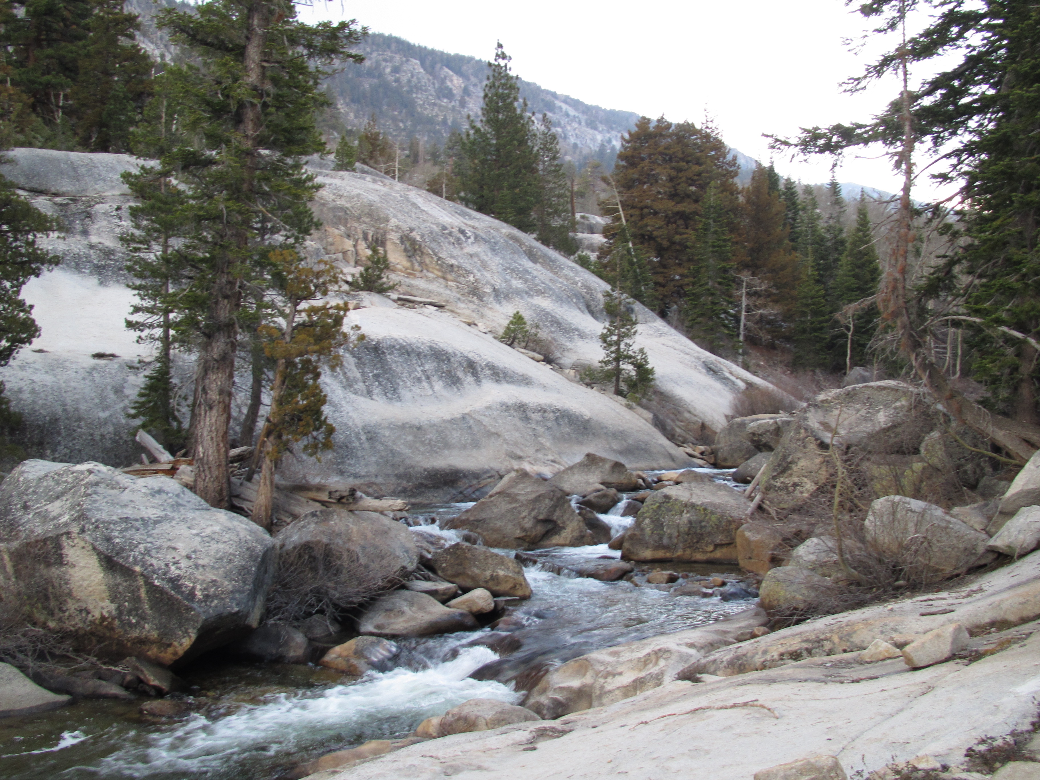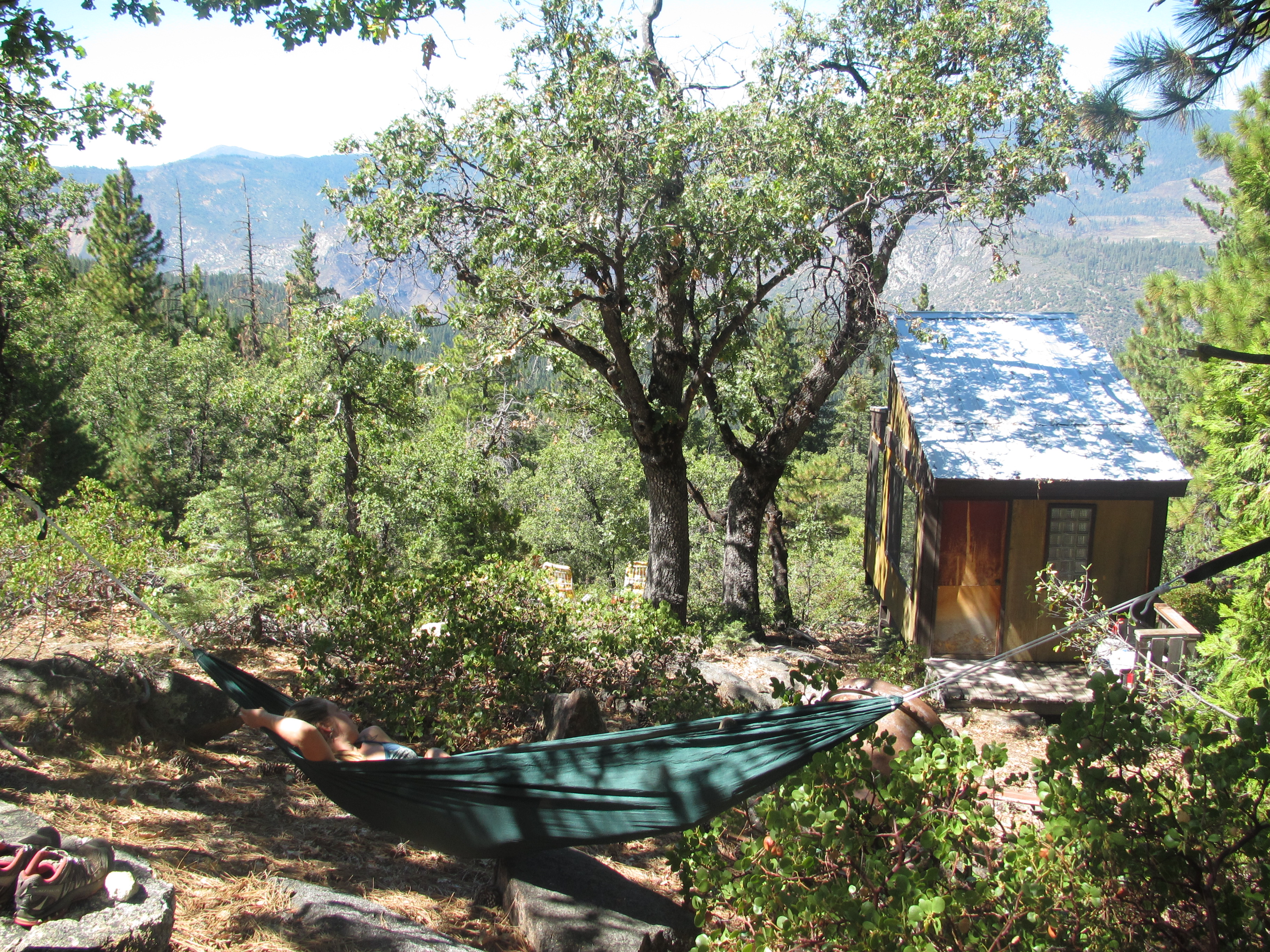 I didn’t have too many visitors during my stint in the park, except for my mom. She is the kind of woman to require comforts like running water, electricity, walls, toilets, etc… you know, “regular” stuff. I’ve begun a lifestyle so minimal and cheap that I’ve grown comfortable without these things. I don’t mind pooping outside or carrying my water into camp. If I need it hot, I heat it up on my camp stove. If I need a light, I make a fire or carry around a lantern. Everything is just fine that way for me, but I knew it would be slightly uncomfortable for my mom. I was surprised when she followed through with her plans to visit me even after I told her how I live. She was brave and came to visit me anyway. I gave her my bed in “the cabin” and slept outside in my outdoor kitchen. I took her car camping in the High Sierra before taking her on an easy one nighter in the wilderness. We hiked out of Lyle Canyon and went a few miles. She carried a backpack with just a sleeping bag inside and a couple of clothes. Dutifully, I carried the rest, knowing we didn’t have too far to go before we would camp. That night we slept cozily inside my two man tent, only to awake to frost covering it in the morning. We cooked a meal with the river water flowing through the canyon, forded a stream, and enjoyed the sounds of the wild night. She did great, and I was proud to see her so tolerant of a lifestyle so far from hers. I really appreciated it and had no idea she could be so tough. Love ya Mom!