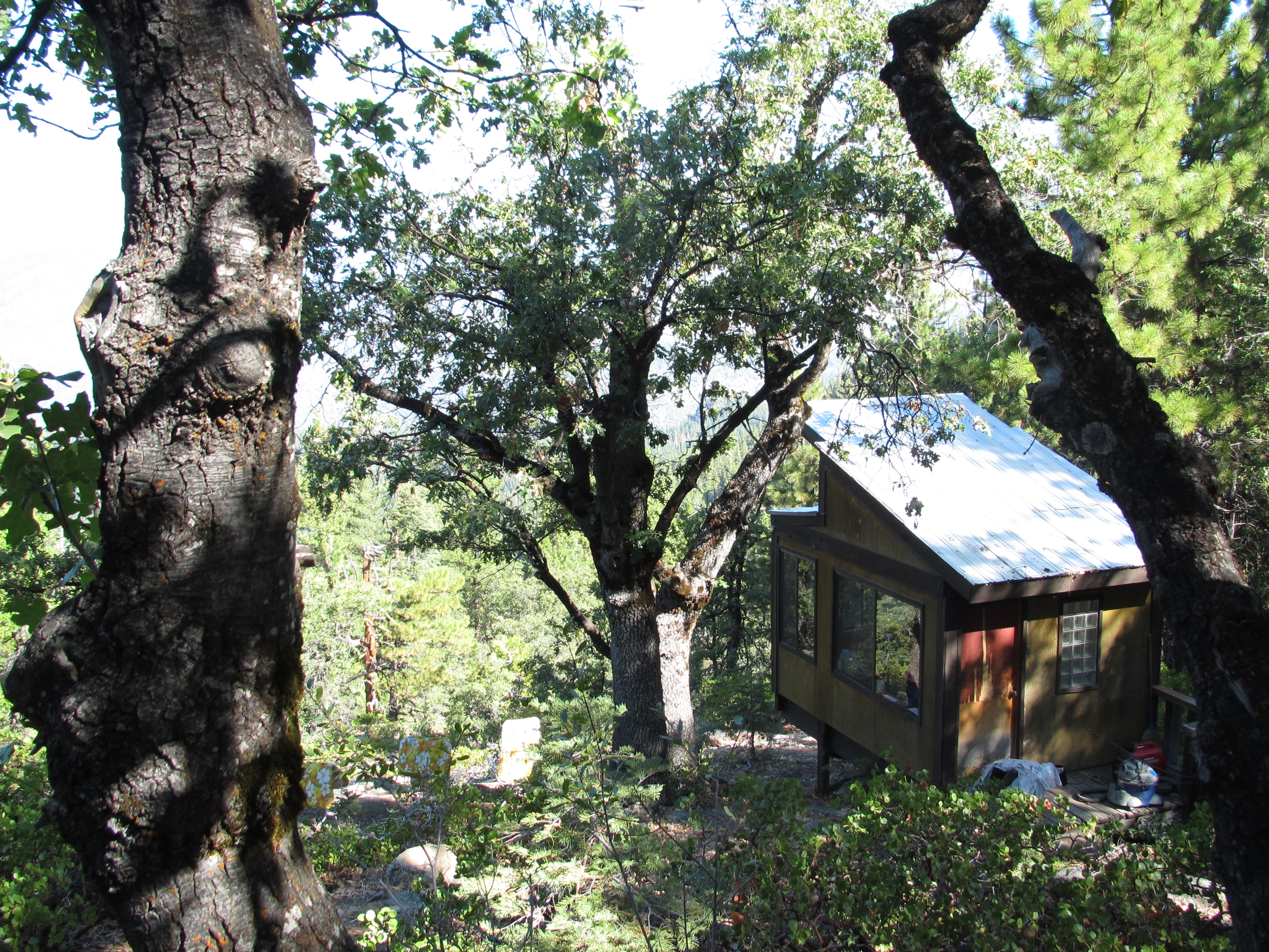 After confiding in a coworker that I was homeless and stressed out about illegally camping, she told me she wanted to help me. She connected me to another Yosemite local who had land on the other side of the Merced River Valley. He allowed me to live in a tiny shack about 5 minutes walking distance from his home. I lived in the tiny 10X4 shack for the remainder of my summer. It had windows all around that overlooked the western foothills of the Sierra Nevada mountains, and I had complete privacy there, besides the resident red-tailed hawk who perched high in a pine tree above my cabin every day, and the mama bear and her cub who occasionally sauntered through. Once again, I was afraid of something new. I missed my comfortable camp across the valley, but before I knew it, this little cabin became my home and I just loved waking up to the sun shining in my windows. Inside, I had a table, a futon bed, and a chair. I decorated the space with incense, a couple of candles, special stones and dried plants I’ve collected from places I’ve been, and a string of battery powered LED lights. It was a beautiful little home. Outside I had a couple camp chairs, a small metal table for eating on, and a giant tool box that I stored all my kitchen supplies in, and used as a kitchen counter top. I had all the necessities to make it work perfectly for me. It was cozy and beautiful, as well as fully functional. I even put up a hammock between my cabin and my kitchen. It felt like home. I’d often rush home after work to catch the sunset from the top of the ridge. A ten minute walk on a dirt road from the cabin lead to an overlook of the western foothills, and a perfect place to witness the setting sun. I often walked back in the dark, always feeling grateful for my shelter once I’d walk in the door of what became my sanctuary.